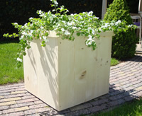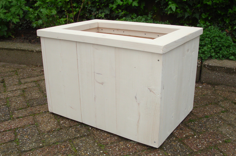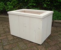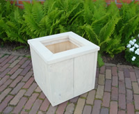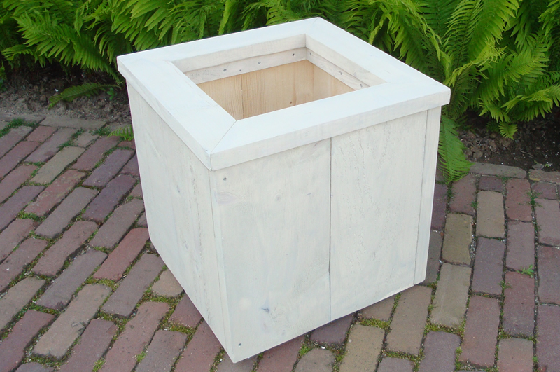 Mooie steigerhouten bloembakken, die gevuld worden met planten, verrijken je terras! Ik maak ze in alle maten die je wilt en eventueel op verzoek met wielen eronder. De standaard afmeting is b40xd40xh40cm en kost €74,00 . De plantenbakken worden standaard met worteldoek gemonteerd afgeleverd. Leverbaar in gebruikt en nieuw steigerhout.Meer info