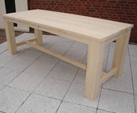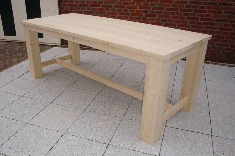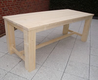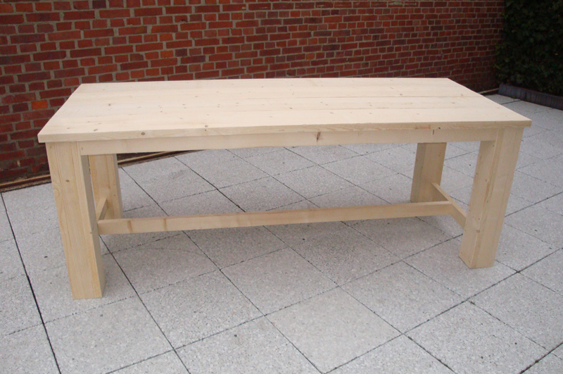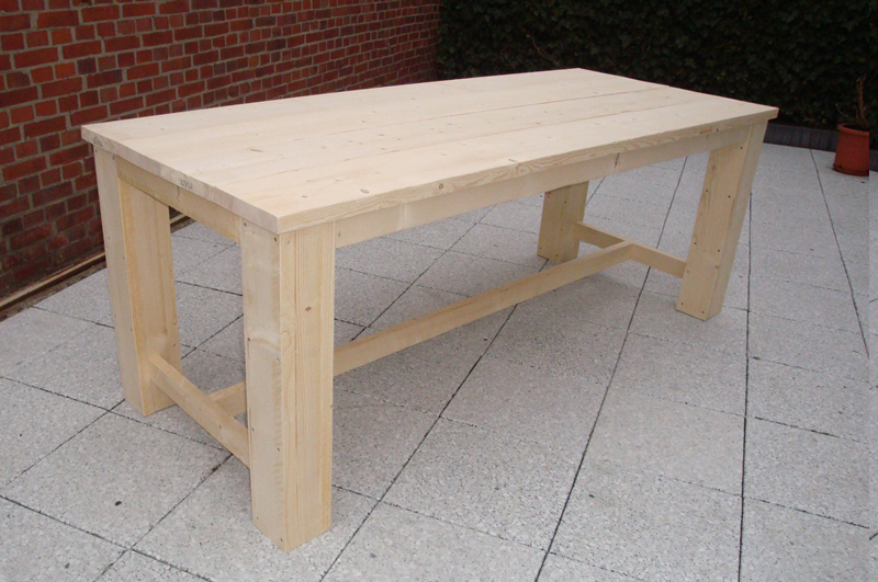 Een steigerhouten (eet)tafel, vervaardigd van gebruikte of nieuwe steigerplanken. Deze tafel is leverbaar met of zonder onderliggers (balkjes tussen de poten) Deze tafel is verkrijgbaar in vele verschillende maten.Meer info