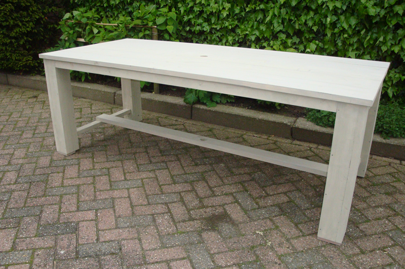 Een steigerhouten (eet)tafel, vervaardigd van gebruikte of nieuwe steigerplanken. Deze tafel is leverbaar met of zonder onderliggers (balkjes tussen de poten) Deze tafel is verkrijgbaar in vele verschillende maten.Meer info