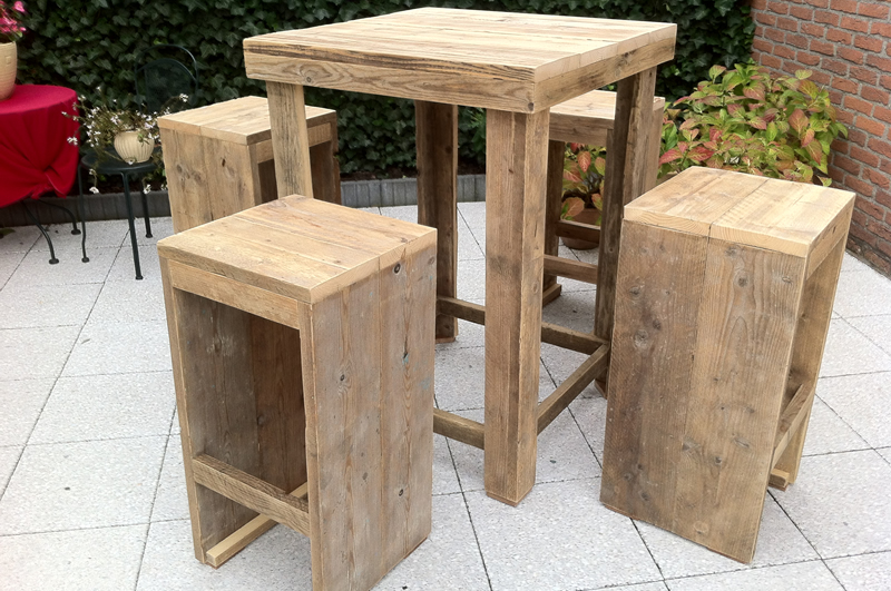 Bartafel Henry en Barkruk Astrid van gebruikt Steigerhout.